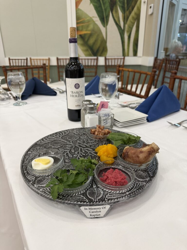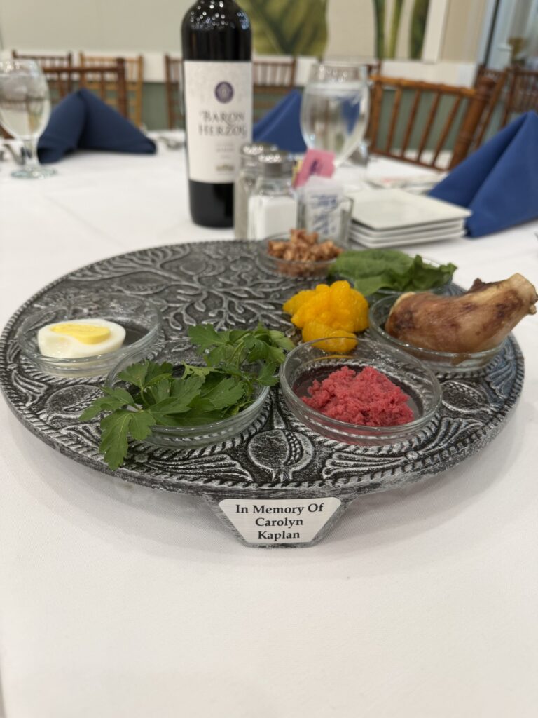 This year, thanks to the Kaplan family’s generous and loving gift, our community gathered around newly dedicated Seder plates inscribed in Carolyn’s memory and opened the new Our Community Haggadah. These are not simply ritual objects; they are vessels of memory, generosity, and love. They reflect Carolyn’s belief that Passover is meant to be shared, that stories must be passed on, and that every person at the table belongs. In every ritual and every song, we felt her presence.